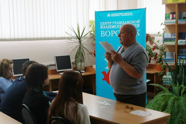 19 октября поэт Виктор Николаевич Иванов провел для студентов ВИВТ и волонтеров ЦГВ-Воронеж урок «Жизненной мудрости». Наш гость живет в с. Рождественское Поворинского района. Несколько лет назад волонтеры помогли поэту издать сборник стихов, нашли издателя и с тех пор стали большими друзьями.