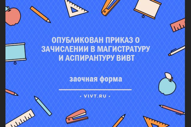Опубликован приказ о зачислении в магистратуру и аспирантуру ВИВТ (заочная форма).