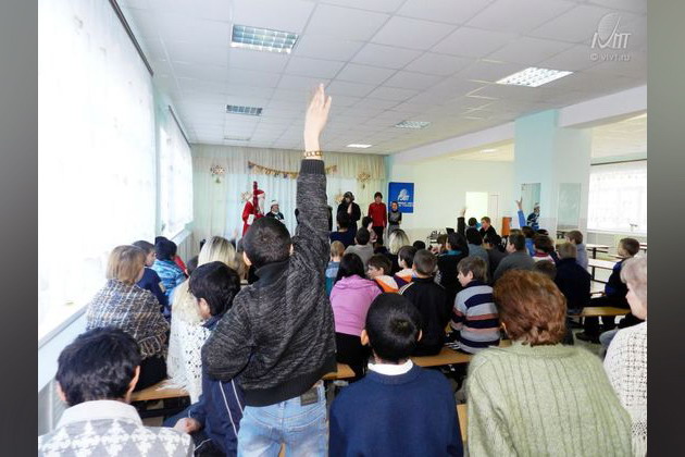 Студенческая благотворительная акция ВИВТ «Распахни свое сердце» завершилась большим новогодним представлением для детей-сирот Бутурлиновской специализированной (коррекционной) школы. Воспитанники школы, а это 60 мальчишек и девчонок с восторгом встретили Деда Мороза, Снегурочку, Бабу Ягу, Лешего и других сказочных персонажей. Ребятишки с огромным удовольствием играли с нашими студентами-актерами, отгадывали загадки, участвовали в конкурсной программе, пели песни. Ну, а самым запоминающимся моментом для них стало получение подарков из рук Деда Мороза: игрушек, канцтоваров, конфет.