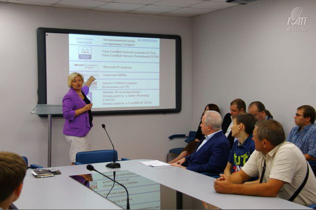 В Воронежском институте высоких технологий 22 июля состоялась встреча с абитуриентами направлений «Информационные системы и технологии» и «Информатика и вычислительная техника». Ребята и их родители интересовались не только особенностями обучения в институте, но и вопросами перспектив будущего трудоустройства. Особое внимание специфике вуза, его научной составляющей, международным проектам и критериям эффективности уделил Президент ВИВТ доктор технических наук, профессор, заслуженный деятель науки РФ, академик РАЕН Яков Евсеевич Львович. Живой интерес присутствующих вызвали рассказы о построении обучения компьютерному дизайну (преподаватель и партнер ВИВТ, директор рекламного агентства «Кубик Рубика» Александр Суворов), программированию (старший преподаватель Ростислав Паневин), сетевым технологиям и работе «с железом» (старший преподаватель Антон Анашкин). «Значимость международной сертификации в рамках обучения бакалавра в ВИВТ трудно переоценить, - подчеркнула гостья встречи, директор ООО «Комнет» Ольга Олеговна Ивентьева. – Когда приходит на работу выпускник вуза, имеющий помимо диплома ещё и международную сертификацию, для работодателя это однозначный приоритет. Ещё один важный момент: работодателю, которым мы тоже являемся, исключительно важны не только теоретические знания выпускника, но и их применение на практике: что он умеет делать руками. С этой точки зрения особая система организации практик в ВИВТ – огромный плюс».