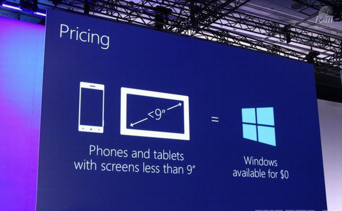 Находят свое подтверждение слухи, что Microsoft существенно снижает цены и пересматривает свою политику для упрощения распространения своих продуктов на мобильных устройствах. На конференции Build 2014 компания объявила, что операционная система Windows будет бесплатной для разработчиков оборудования для использования на телефонах, планшетах с экранами меньше девяти дюймов и других аналогичных устройствах. Это однозначно серьезный ход технологического гиганта, для которого лицензионная операционная система - хлеб с маслом :) Очевидно, Microsoft готовится принять определенные финансовые издержки, чтобы конкурировать с Android, Chrome OS и другими свободно доступными платформами.